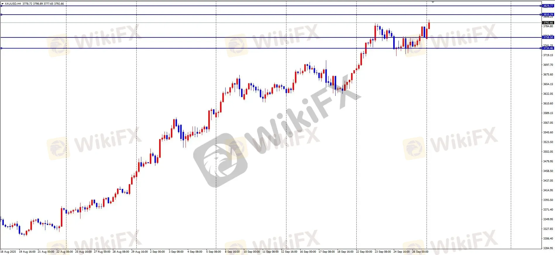 昨日回顾与ETO Markets观点:上周五黄金亚欧盘横盘震荡,美盘受数据刺激突破3783.6后回落,全天波幅493点,日线收小阳线。今日早盘突破3791至3798.6,逼近3800大关。地缘风险、美联储政策转向及去美元化浪潮持续支撑黄金,但月线收线前需警惕冲高回落风险。