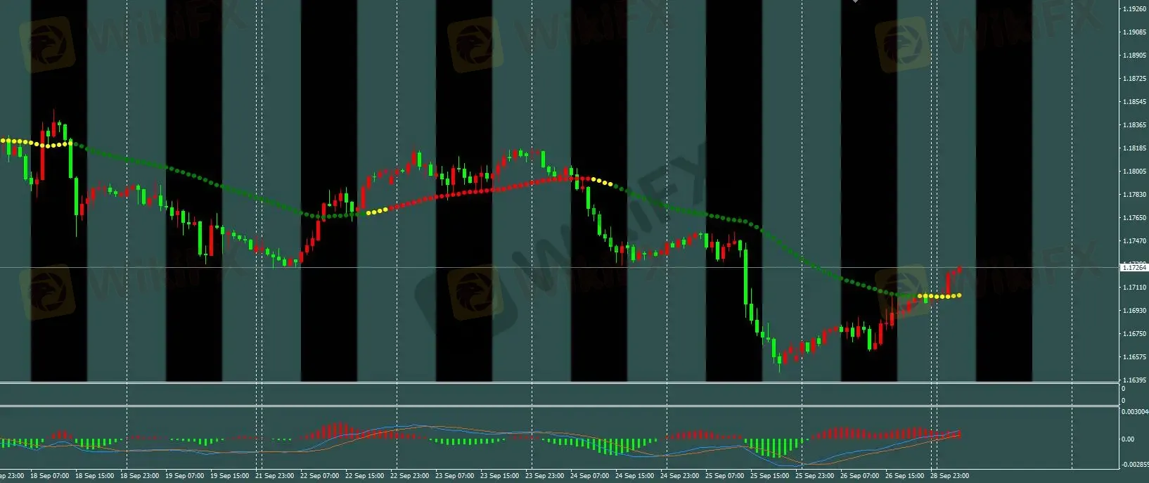三色线交易策略:H1趋势线转黄,空单1.1754已盈利,今日参考M5模型操作。