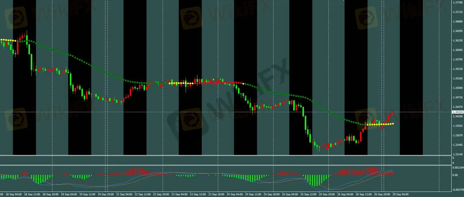 三色线交易策略:H1转黄,空单1.3467已盈利,今日参考M5模型操作。