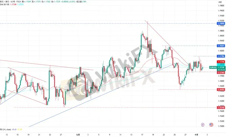周三,欧元/美元下跌至1.17299美元。美元方面,由于美国政府正式停摆,劳工统计局等机构暂停运营,本周五原定发布的9月非农就业报告将被推迟。对此,美国副总统万斯表示,他不认为政府关门会持续很长时间,另一方面,美国9月ADP全国就业人数增幅不及预期,凸显劳动市场疲软。欧元区方面,欧元区9月CPI年率初值为2.2%,高于前值的2.0%;同时欧元区9月制造业PMI终值从49.5升至49.8,显示萎缩态势略有改善。展望后市,周四美国经济日程将公布当挑战者企业裁员人数、周初请失业金人数以及工厂订单月率,而欧元区则将公布8月失业率。
