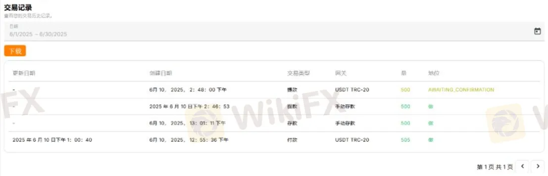 今年6月10日一位香港用户sjnkebz在ALPEX TRADING入金500美元,当日出金然而提款遭冻结。