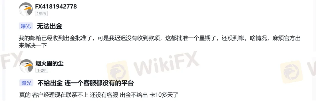不仅是“撸赠金”的用户, 真实投资者同样遭遇出金困难。自 2024 年 10 月以来,连续多月都有用户曝光该平台无法出金的问题。