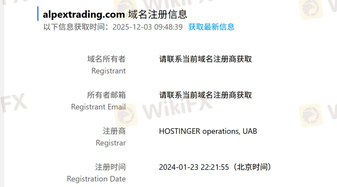 ALPEX TRADING使用的域名注册时间不足两年,“Alpex Trading目前仅服务于亚太地区,特别是东南亚地区的客户。” 外汇天眼上的曝光用户绝大多数来自国内和马来西亚。