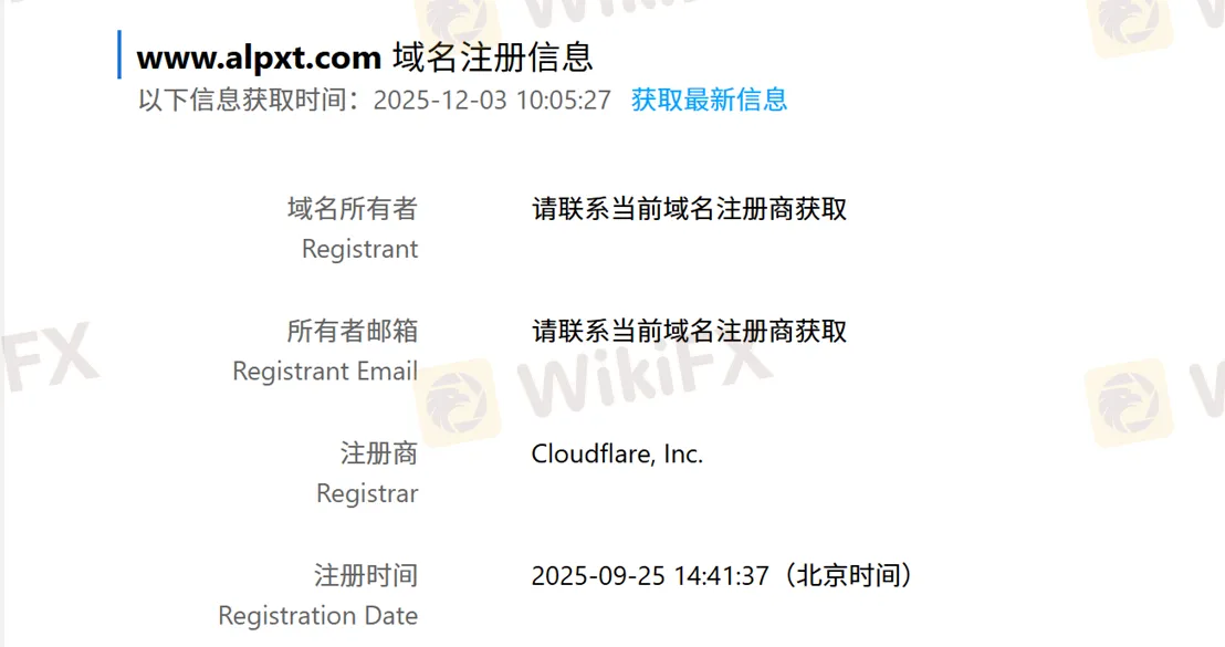 【客户协议】中网站(www.alpxt.com)注册时间是2025年9月25日,该网站界面内容与Alpex Trading常用网站内容完全一样。【隐私政策】、【风险披露】两份文件显示的网站仍是Alpex Trading常用网站。