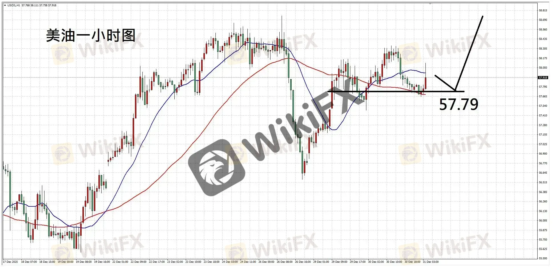 操作建议:建议57.79短多,止损57.45以下,目标58.34-58.65。