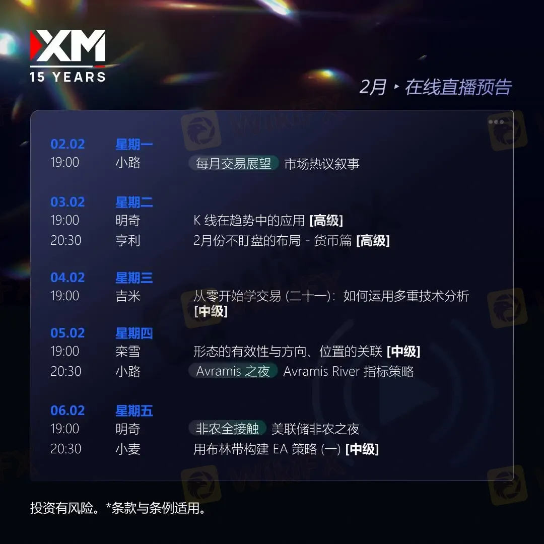 🔥 每周一至周五,1小时+实战教学, XM陪你紧贴市场节奏,拆解交易逻辑,掌握实用策略与高效出场技巧,全面提升交易稳定度与胜率!