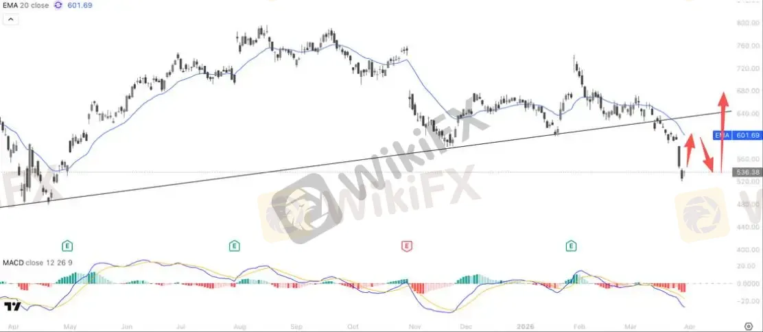 技术面上,Meta 日线级别已进入极度超跌区间,目前价格正逼近 2025 年 4 月的重要低点支撑。值得关注的是,在昨日大盘整体承压的背景下,Meta 走出独立行情逆势收涨,显示低位承接盘力量强劲,资金抄底意图明显。考虑到市场情绪波动,不排除短期内会出现二次探底以确认底部支撑的稳固性。操作策略上,激进投资者可于当前位置尝试轻仓介入,而风格稳健的交易者则建议耐心等待二次回踩确认后的右侧入场机会。