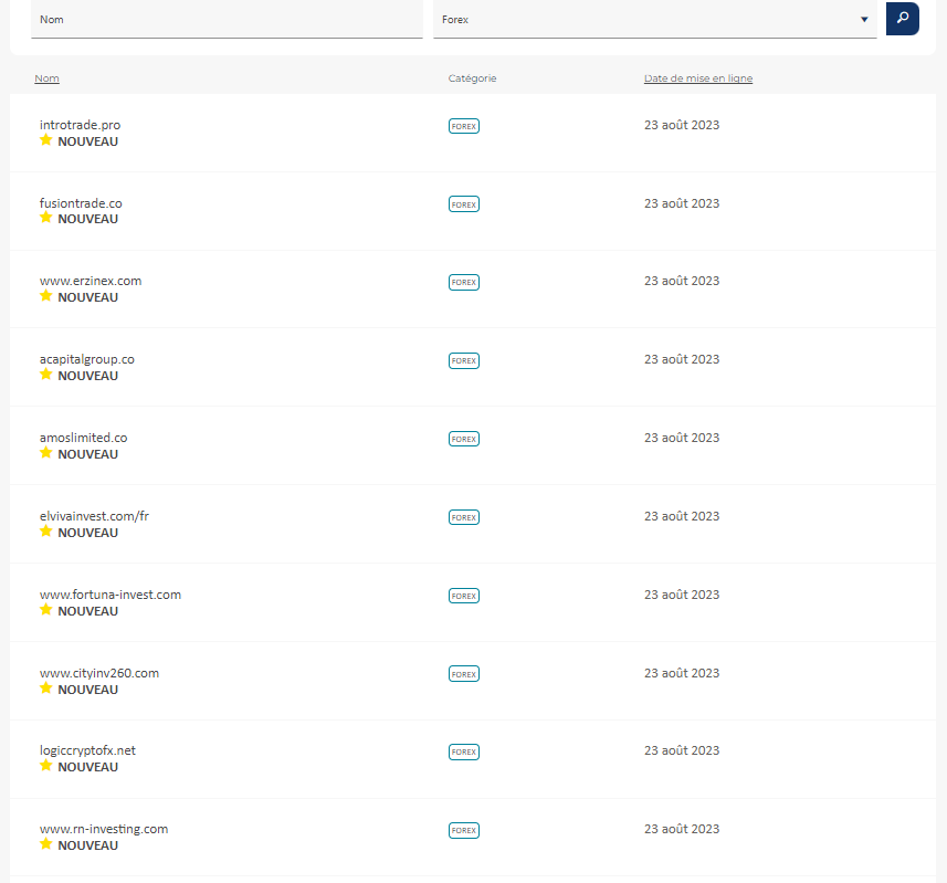 这是金融市场管理局 (AMF) 列入黑名单的公司或网站、对受监管公司的警告和/或篡夺的列表。