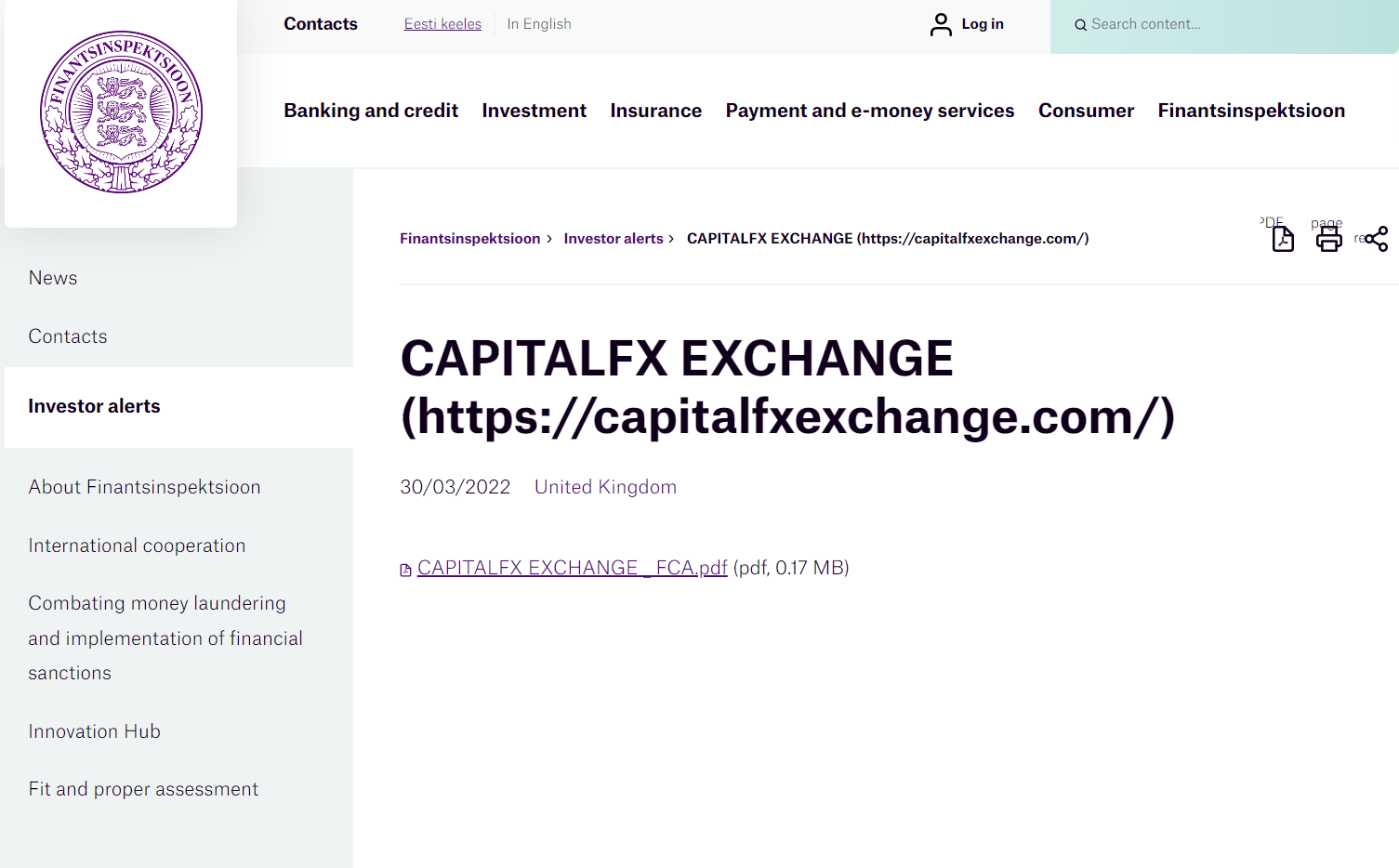 投资者警示 - CAPITALFX交易所.