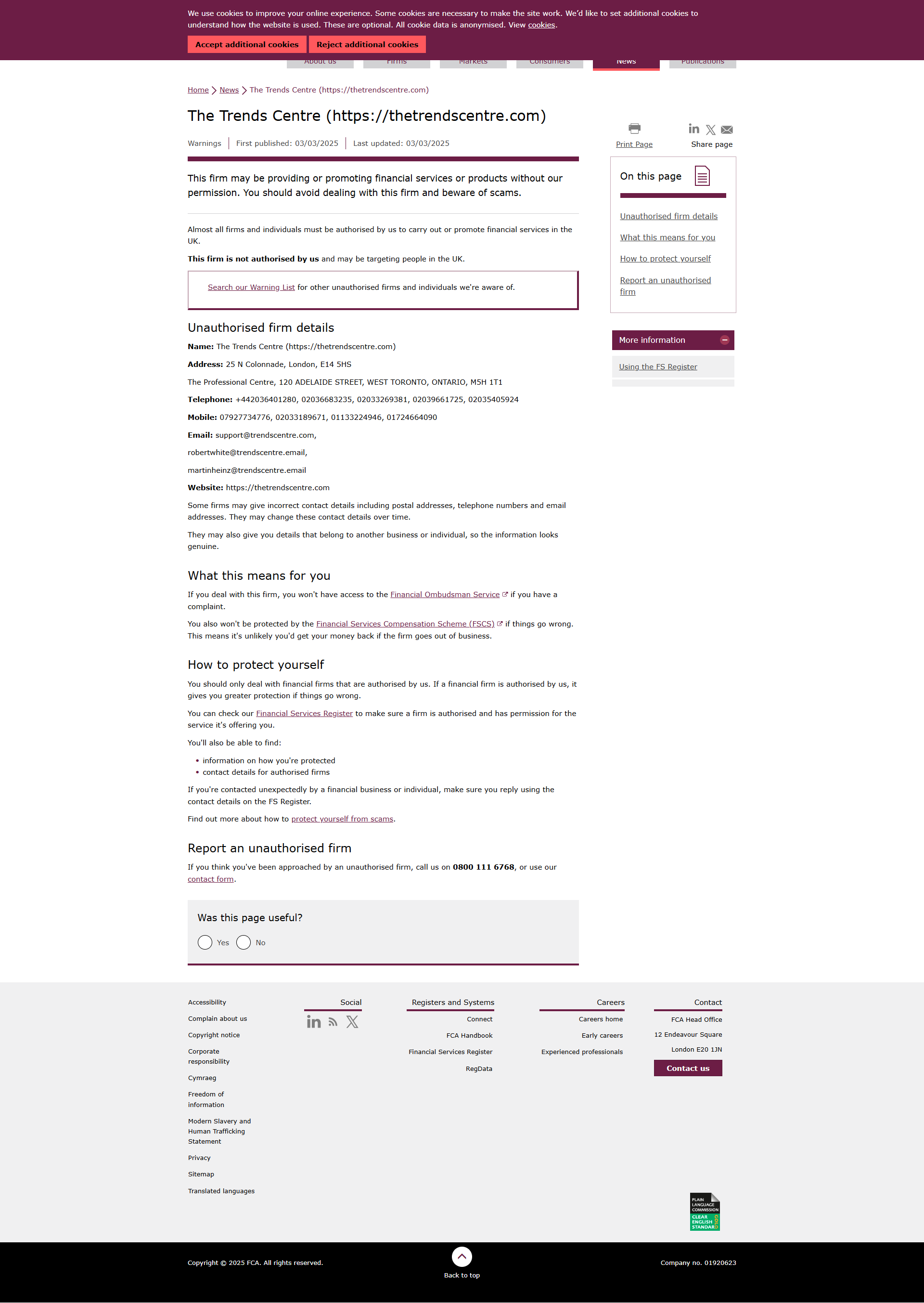 FCA未经授权公司警告名单 Trends中心 (https://thetrendscentre.com).