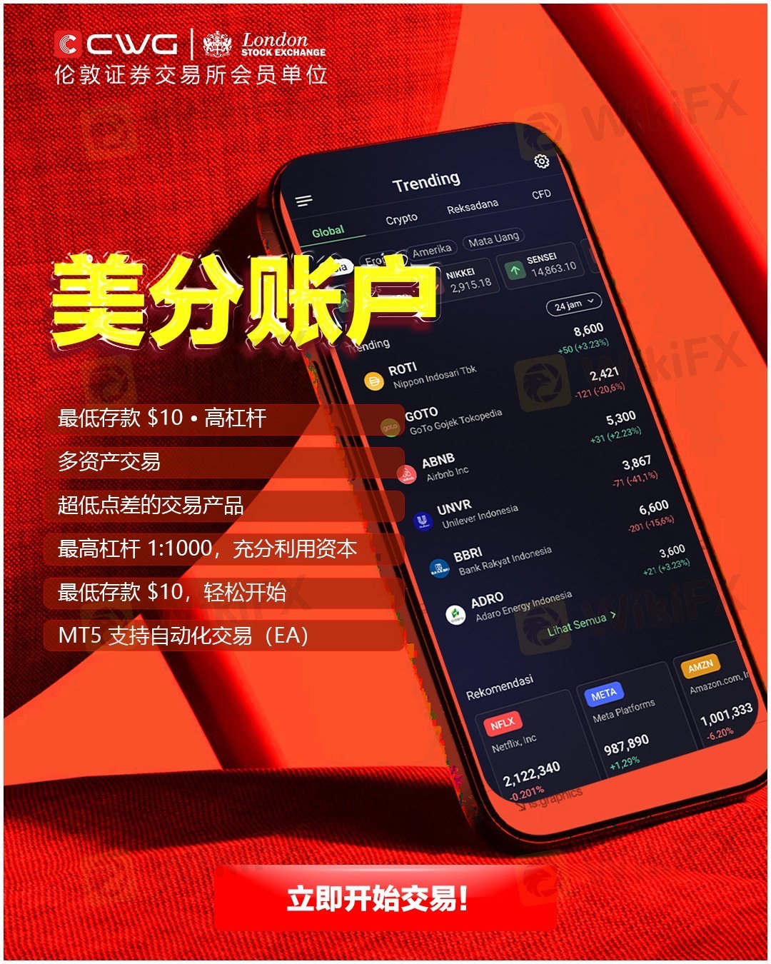 在英国EC安盈平台上,我们还提供:- 五国监管,确保资金安全无忧。- 极致杠杆配置,高达500倍杠杆
