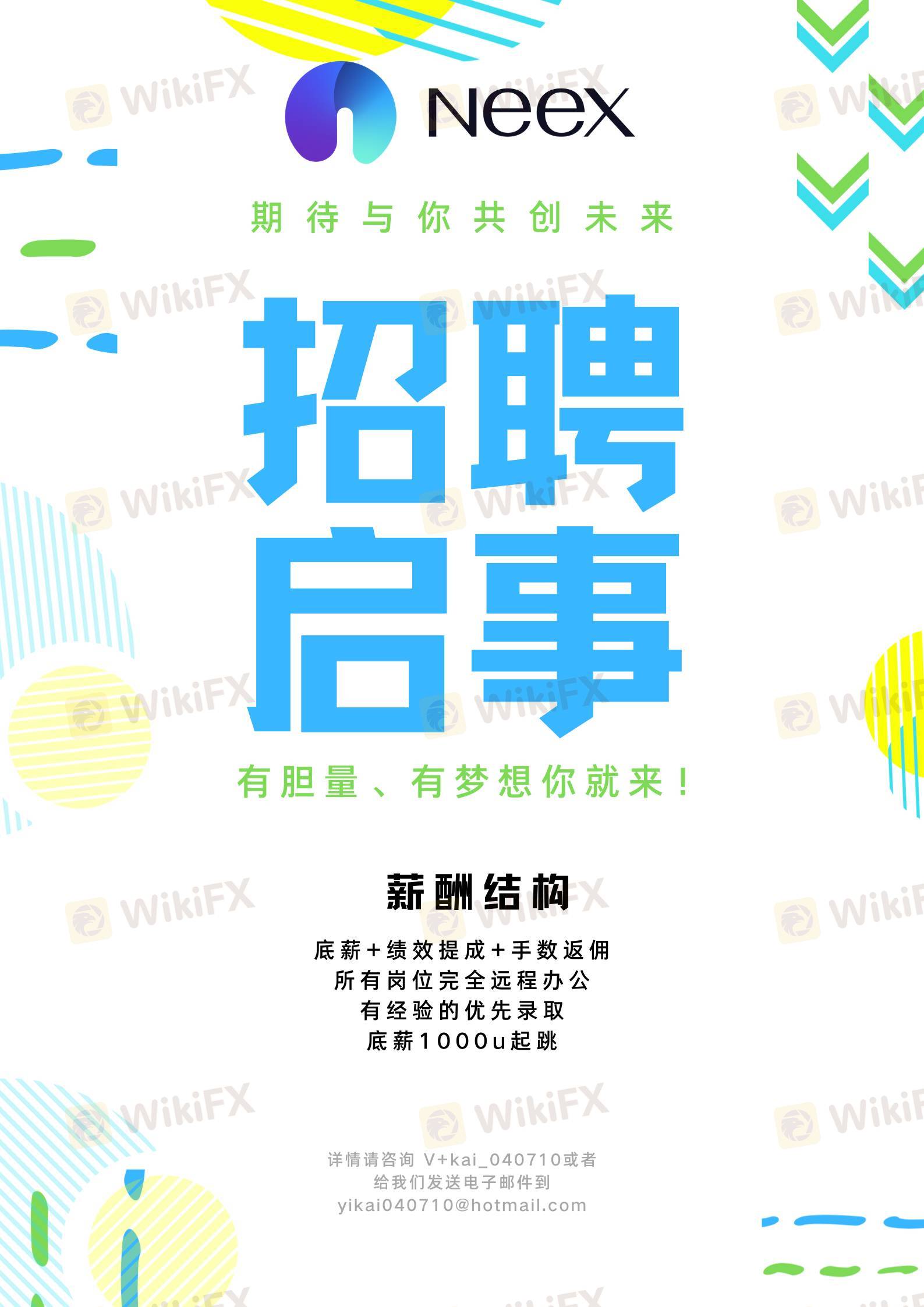 招聘 招聘!!NEEX全球招商 考核门槛低 出入金快速 高底薪以及提成 福利好 平台稳定快速 职要你