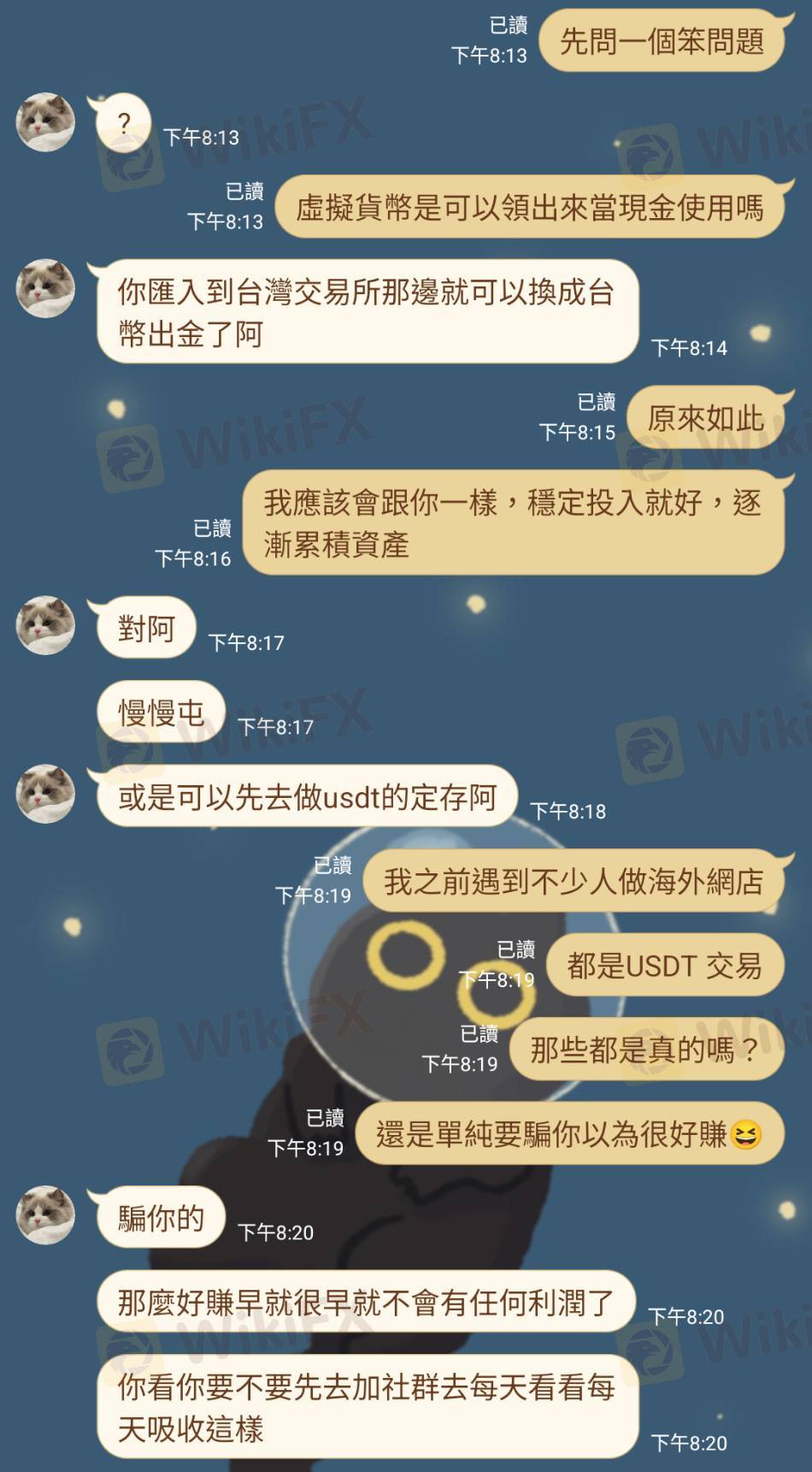 1. 113.11.26 本人透過交友軟體認識一名女性,簡稱L,聊天過程無任何要我投資高報酬的理財方案或入金到指定帳戶或碰面交易任何東西,僅推薦LINE社群"洋蔥圈加密貨幣"。 該社群為EC Capital(Equitrade Capital同名,簡稱EC)的官方所屬,從EC官網(https://equitradecl.com/)連結得到。 2. 在洋蔥圈加密貨幣社群裡,EC經常介紹自己的平台和產品類別,同時宣導防詐事宜,無投資誘導及、獲利承諾、報單等行為,自己要瞭解產品需自行私EC客服LINE帳號,要入金可以選擇在EC官網系統內,也可以直接透過EC客服聯繫。 3. 本人首次入金日期為114.03.03,在這之前一直在觀察是否EC有詐騙嫌疑,在期間也去實體交易所買幣,打進本人的幣安錢包,本人再從幣安入金至EC客服提供的地址(TBA2JozKGZQBihVjX4Jq81tKiWatFRFQwb),金額為15000 USDT,理財項目為EC的流動性礦池活動,03.31活動到期之後,本人決定只提領獎金利息至Bitopro錢包,本金向EC申請直接轉移到雙幣BTC/USDT定存活動,綁定合約04.01至04.30,前一活動結算的利息,EC宣稱有向系統申請安排。 04.01起本人一直向EC詢問獎金利息出款事宜,過程宣稱系統擁擠,又是系統內部多簽錢包問題,直到04.21 EC客服就再也不讀不回本人留言,至今仍不回覆,本人應該是被封鎖了。 等於是本人沒有提領到任何一毛錢,本金有卡在EC那無法出金。 4.如下圖所示: 對話紀錄(包含與網友和EC官方的)、活動入金通知、入金交易明細