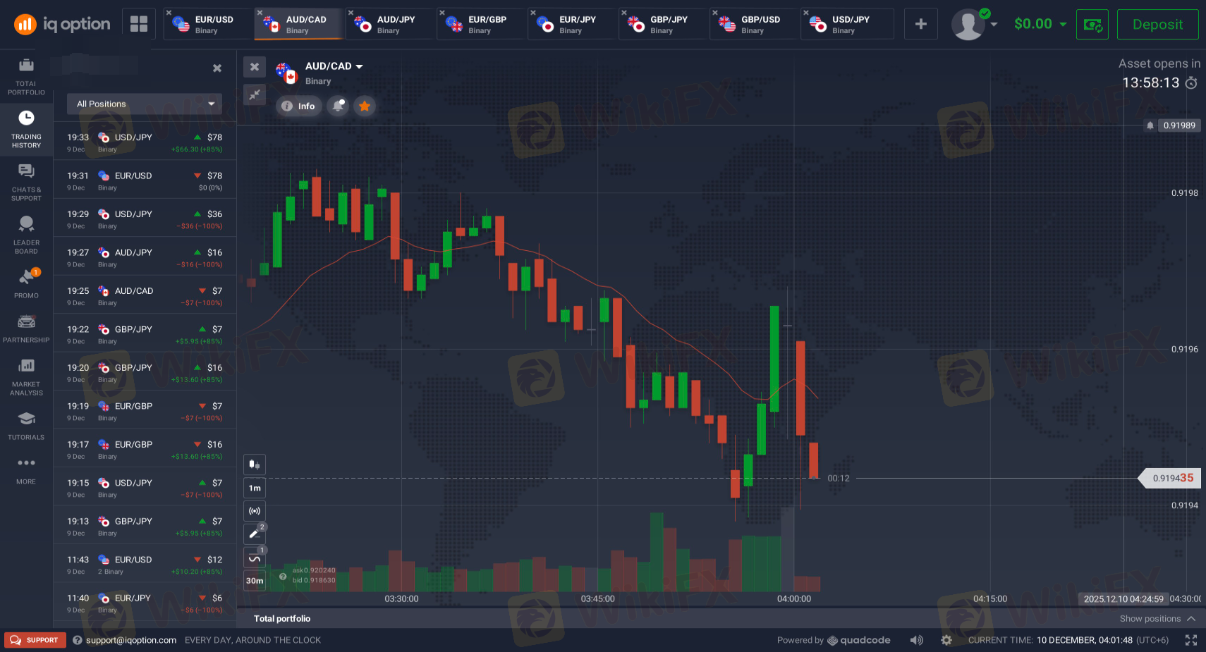 我透過Binance TRC20在IQ Option存入187美元。 他們給了我200%的獎金,我交易了一個月。 通過真實交易,我獲得了實際利潤,我的真實餘額變為336美元(不包括獎金)。 我的總餘額顯示為716美元,包括獎金在內。 然後我取消了獎金,但IQ Option移除了我的全部餘額,並將我的帳戶餘額設為0美元。 這完全無法接受,且違反基本財務規則,因為: 1. 我的187美元存款是真實資金,絕不應因獎金條款而被移除。 2. 我的336美元利潤是通過真實交易活動賺取的,不應被刪除。 3. 取消獎金只能移除獎金部分——而非真實資金或真實利潤。 我沒有716美元餘額的截圖,因為IQ Option未提供任何 取消獎金時的確認訊息或彈出視窗。但我有以下證明: - Binance TRC20 存款證明(187 美元) - 顯示一個月真實活動的交易記錄 - 當前餘額顯示為 0 美元 - 獎金記錄顯示已啟用