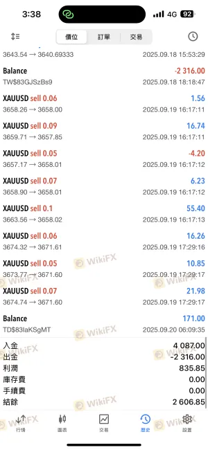 有自動跟單,代號506還不錯是馬丁搭配FVG的策略目前實測下來蠻穩的,但是跟單系統數據怪怪的,出金正常,如果只算工作天(一到五)1天就到帳戶了,缺點1是點差黃金0.6左右比起其他算大,缺點二出金要手續費1趴蠻多的。但使用起來是沒有什麼問題,目前是這樣啦。下面有出金紀錄跟自動跟單EA,9/6-9/18的成績。本來已經入金,但後面看爆料說出金會擋我也覺得怕怕的,立馬出金試試結果是正常。因為我有兩個交易帳號,本來第二個也要出金,結果他說有審核中資金無法出金,害我更怕。還好沒事。我是抱持著跟單的念頭去加這個券商的,目前使用沒什麼問題。