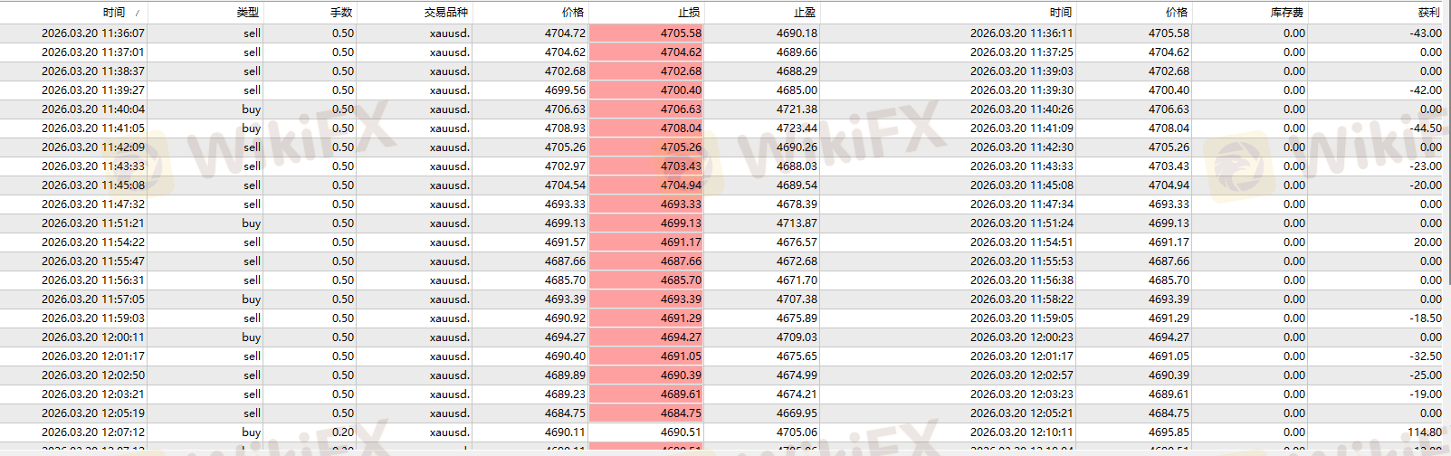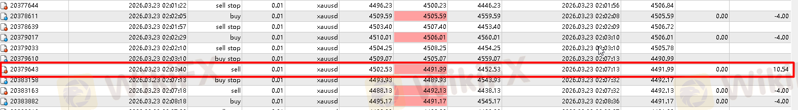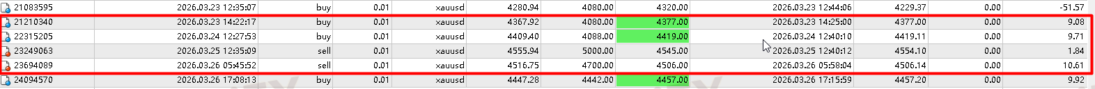 如图4:附部分MT4历史交易记录