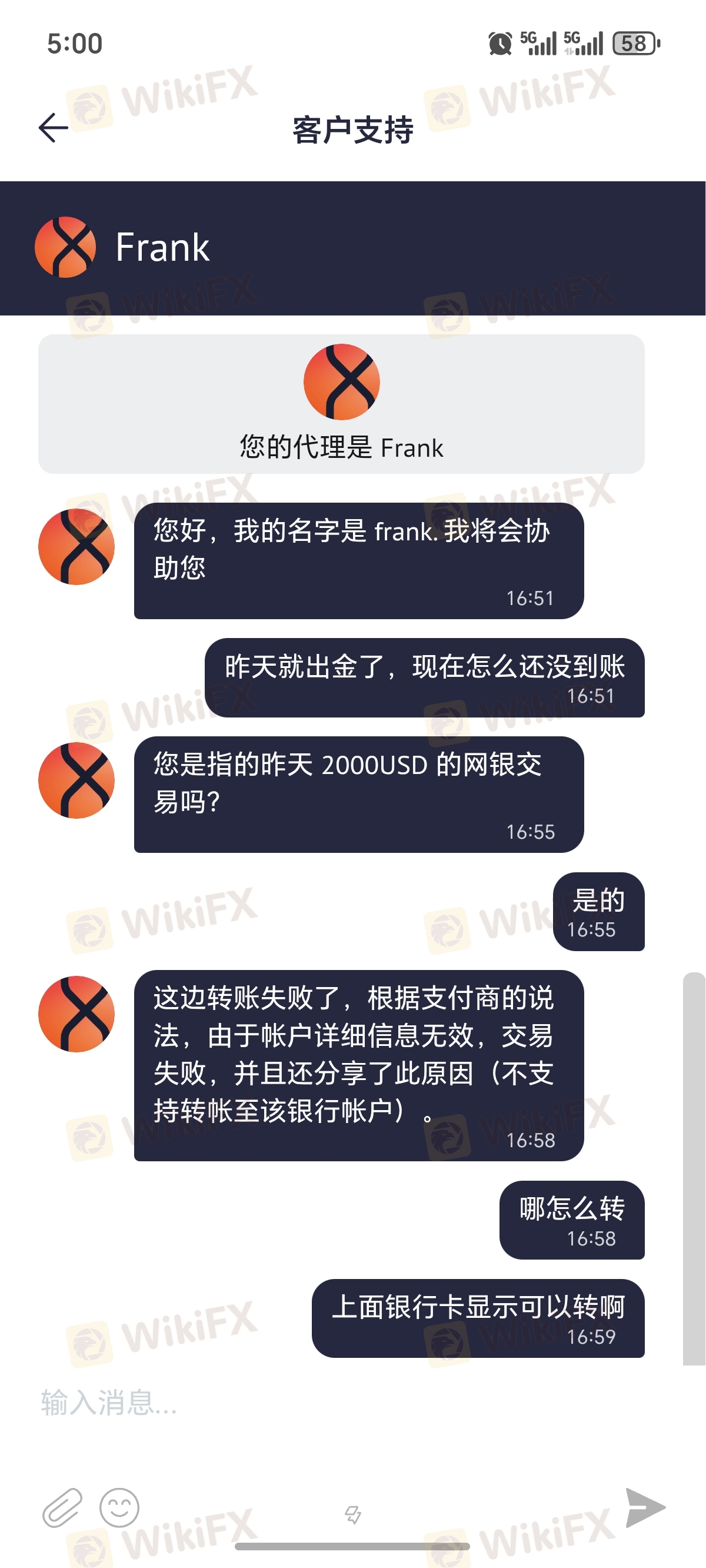 我把錢存入我的賬戶。他們沒有得到獎金。當我想在沒有進行交易的情況下提取我的錢時,他們聲稱我的賬戶未獲批准。儘管我在15 天之內發送了所有文件,但我仍然這樣做了未獲得批准。我已將資金存入我的帳戶,他們尚未輸入獎金,當我想在未進行交易的情況下提取資金時,他們提示我的帳戶尚未獲得批准,即使我已發送了所有資金文件已經15天了,仍然沒有批准