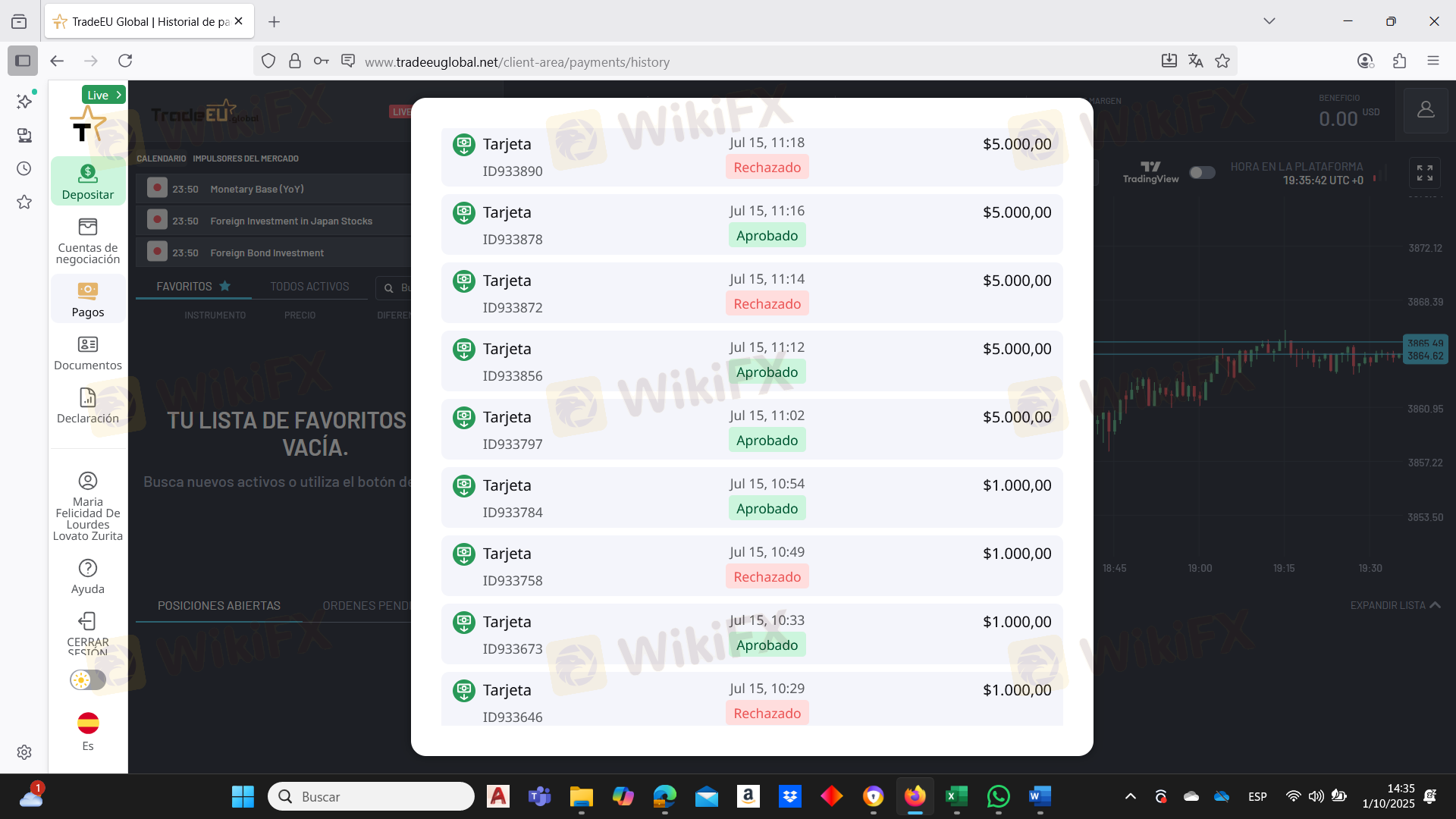 我是María,我遭遇了詐騙,無法取回我的錢。他們試圖繼續從我這裡騙取金錢,並通過電話對我進行勒索,因為他們掌握了我信用卡的資訊,試圖打電話來恐嚇我。我想追回這「所謂的投資」,總金額超過20,000美元。請不要相信global Tradeeu。