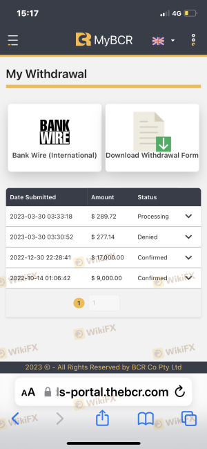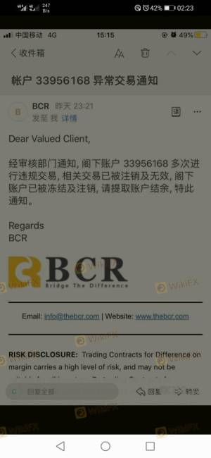 讓一個自稱是bcr平臺的分析師帶到平臺上投資,結果他完全就是騙子,黃金每天才20多點的行情的時候3天就把我入金的3萬澳元都虧沒了。就是騙人的,準備去澳洲監管投訴。