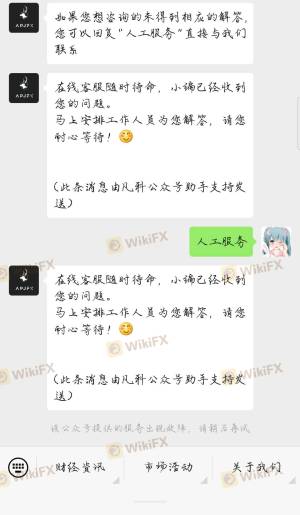 在11月4號開始申請出金,但是現在已經過去半個月依舊沒有審核,打電話給客服,但是顯示客服電話已經停用,微信公眾號詢問,公眾號顯示微信公眾號服務商運營出現問題,在官網進行查詢,客服完全不回應,我個人懷疑apjfx已經跑路,交易商也各種聯系不到,估計現在apjfx已經沒有人了。。。。