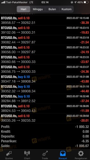騙局,從2022年1月起無法取款。今天是2022年3月7日,我們在一小時內損失了所有的錢。一小時內從56000美元到-14.10美元。華氏、亨德利 sutanto、霍華德和蓮花是騙局,完完全全是欺詐..