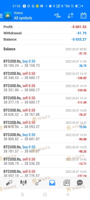 MC騙局虧錢,不砍損失,承認所有損失,但不承認盈利。操縱交易,2022年3月7日一天內的交易全部虧損