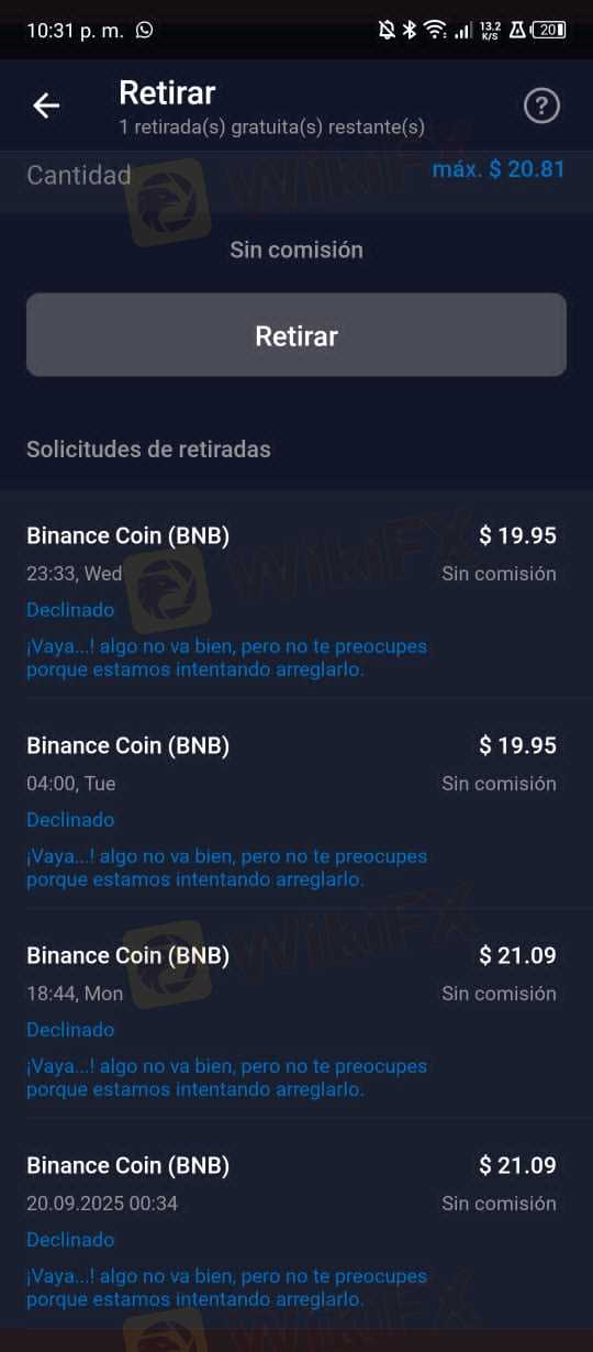 無法完成提款,他們要求你提交提款申請但被拒絕,而且操作時點差非常高,基本上這家經紀商就是設計來讓你虧錢的。 我投資了200美元卻無法提領,請幫幫我,拜託。