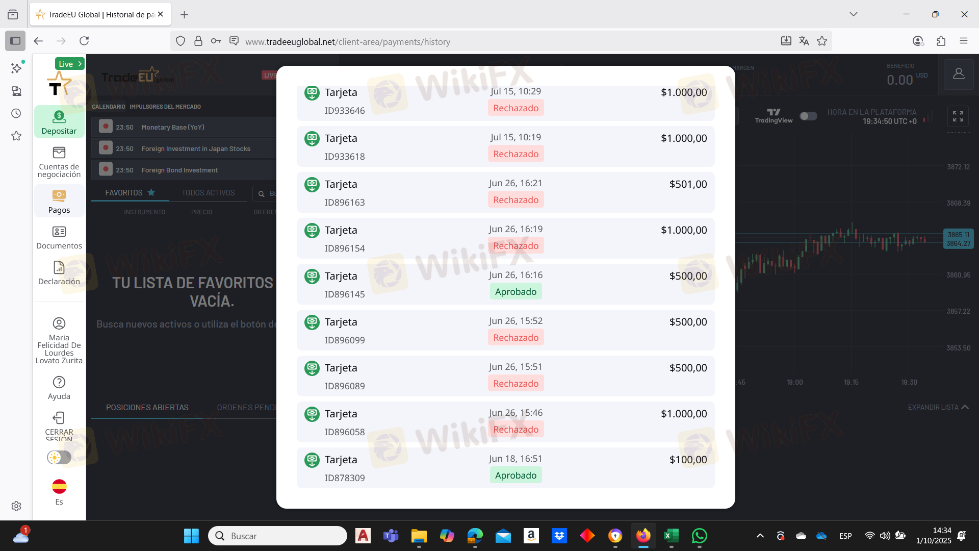 昨天他們只在下午打給我,等了9seg.pero小時卻沒人說話。 今天我看到一封郵件說注意到你有一筆100美元的提款申請,但他們只允許這樣做,卻不讓它生效。這已經是第三天我申報損失9500美元和因為這筆支出而獲得的5000美元獎金。今天他們既沒有在早上也沒有在下午打來。MOBILE.XM RMARKET是詐騙。不要投資你的錢,我失去了多年的積蓄,雖然還有3000美元本金但不允許提款。