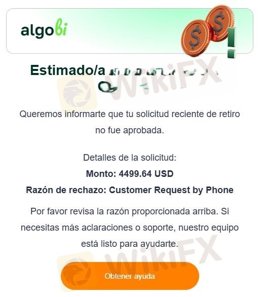 Algobi 透過其顧問詐騙投資,之後不允許提款,他們說你的錢在「金融市場」裡,要釋放你的資金你必須存入更多錢,這是一個卑鄙的騙局。