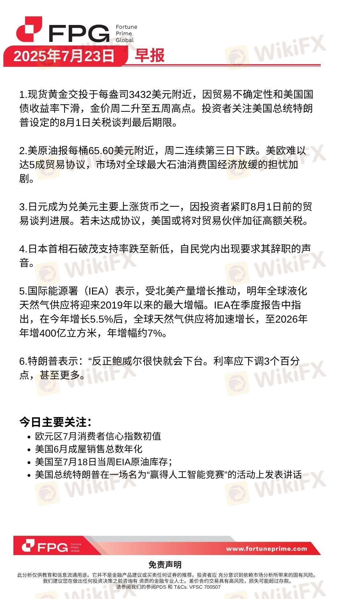 業內📅 7月23日财经早餐:📈 金价创五周新高,因避险情绪升温