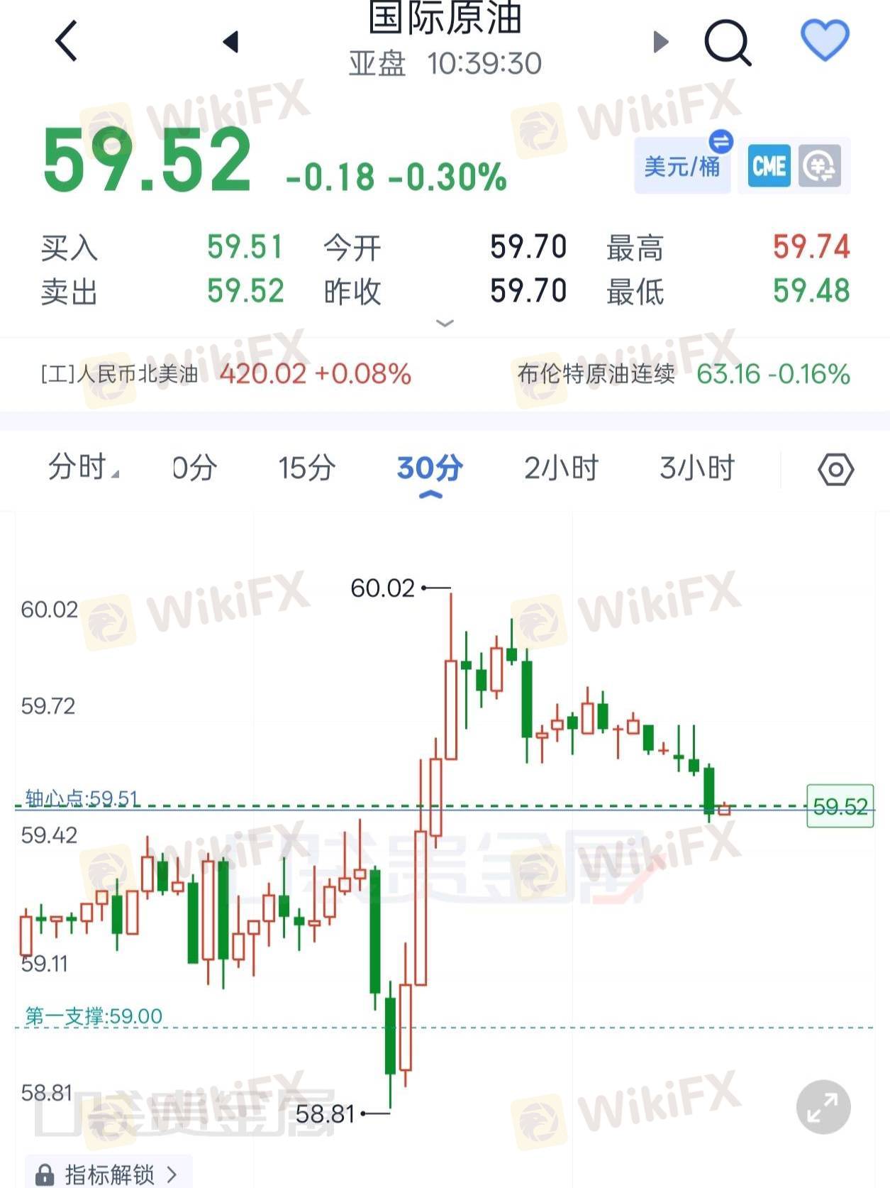 从技术面来看,小时图显示下方58.5-58.0区域形成短期支撑,多次测试后未有效下破,具备一定买盘承接力;4小时图则呈现明显压力位,60.0-60.5区域为短期阻力集中带,反弹至该区间后动能衰减迹象显著,且上方60.8位置形成更强压制,是长线波段做空的关键参考位。