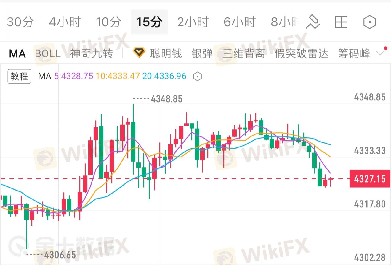 可在4315-4320附近布菊哆,目标看向4335-4350附近。