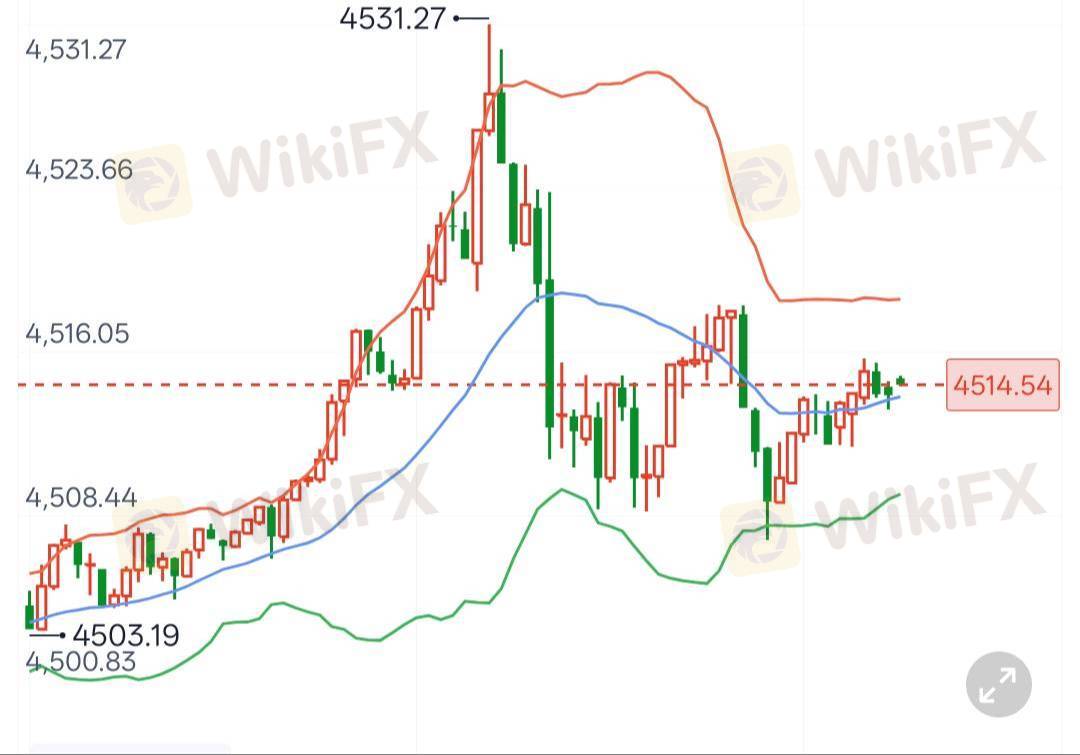 当前圣诞假期临近,市场交投趋于清淡,交易者正静待周三晚间美国初请失业金数据指引方向。黄金多头趋势明确,未见明显见顶信号,操作上维持看涨思路。早盘金价延续上攻态势,一度触及4505附近,涨幅达25美金,后续可等待企稳4460-4470区间布局多单。
