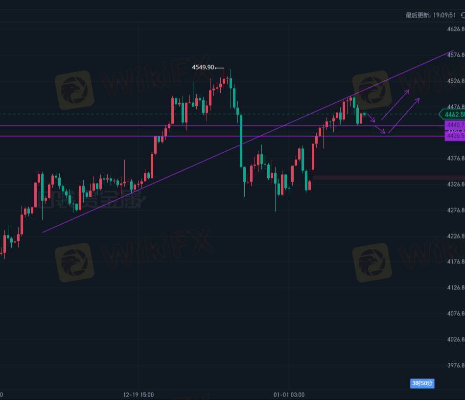- 若回落至4440-4445区间企稳,可轻仓进场多单,止损参考4430,目标上看4470-4480区间。