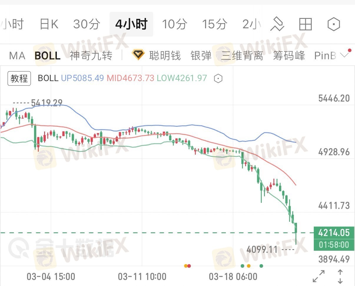 早盘下探4097后小幅反弹,目前在4200附近震荡,上方4250-4300为短线阻力,反弹至该区间易遇阻回落;下方4100-4150是近期低位平台,若跌破或进一步下探4000关口。