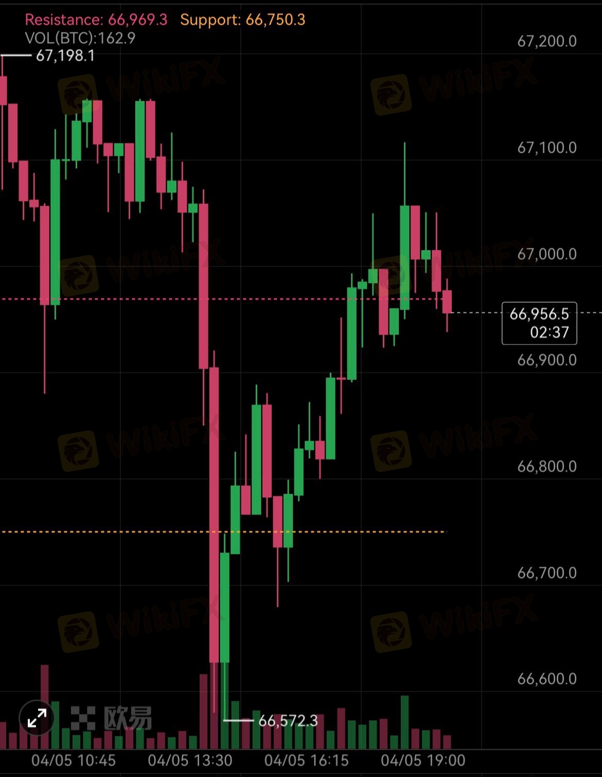 • 放量突破 67172 可追多抓反弹;