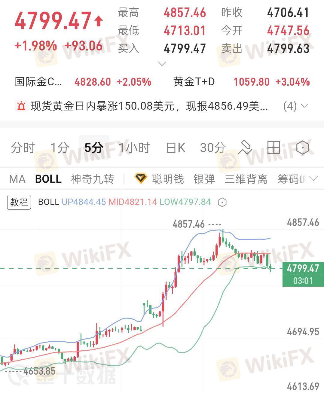 消息面利好持续加持:中东地缘局势持续紧张升级,避险资金源源不断涌入,为金价筑牢底部支撑;同时市场对美联储降息预期不断升温,美元指数承压走弱,多重利多共振之下,黄金多头动能保持充沛。