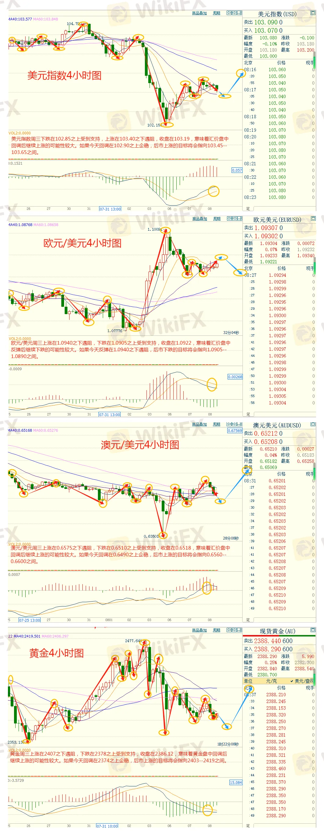 週四(8月8日)亞市盤初,國際油價窄幅震盪,目前交投於2384.98美元/盎司附近。隨著美元和國債收益率上漲,金價週三反彈受阻,收報2382.85美元/盎司,跌幅約0.29%,儘管對美國9月降息的押注增加和中東地緣政治緊張局勢加劇帶來支撐,仍需提防金價下探100日均線2346.03附近支撐的可能性。