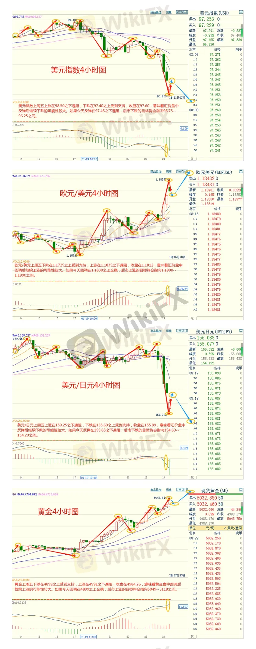 摘要:CWGMarkets市場資訊2026年1月26日(週一):匯訊摘要:上週五,因地緣政治緊張局勢令投資者不安,美元指數全日下行,最終收跌0.84%,報97.46,創去年6月以來的最大週線跌幅;基準的10年期美債收益率最終收報4.233%,對美聯儲政策利率敏感的2年期美債收益率收報3.607%。現貨黃金價格週一(1月26日)延續漲勢,歷史上首次突破每盎司5000美元關鍵關口,截止07:40,盤中最高觸
